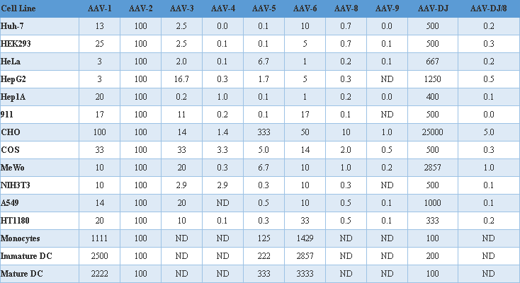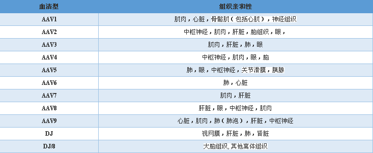 不同AAV血清型對相同的組織和細胞具有不同的感染效率。